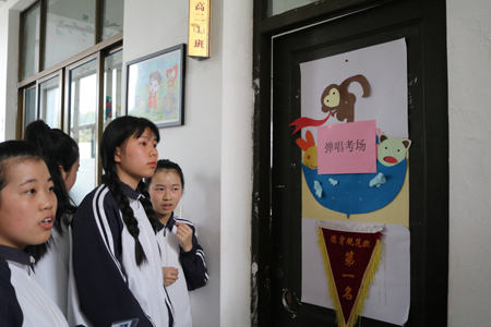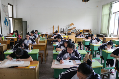 考试现场,有的同学显得分外紧张,但还是有条不紊顺顺利利地参加每一项的考试,普通话、声乐、钢琴、美术、舞蹈都进行地相当顺利。在舞蹈考试前,同学们穿上漂亮的舞蹈服装先在门口雀跃一番,深呼吸后便自信满满地进去考试,她们漂亮的服装、她们精心的装扮表现了她们极其重视技能考。