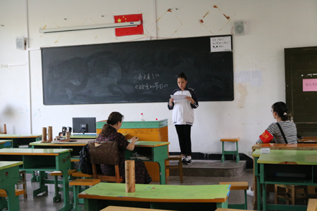 2017年4月18日苍南飞林职校灵溪分校进行一年一度的学前教育专业技能考核,并有专业老师现场考评。
