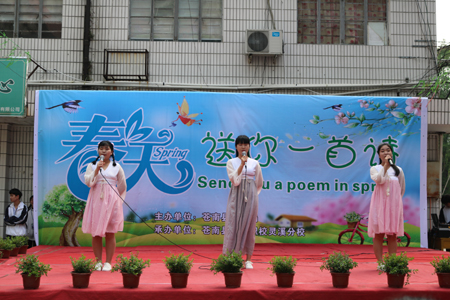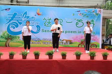 “春天送你一首诗”,送来的是感动,送来的是力量,送来的是凝聚,送来的是真善美。沐浴在春风里,徜徉在诗海中,师生们会感受到生命的活力,会感受到亲情的伟大与厚重,体验到校园生活的美好与纯真,感受到祖国母亲带来的祥和与欢乐。