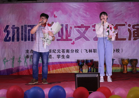 4月27日,苍南飞林职校灵溪分校的2016级高二(1)、高二(2)班幼师专业的学生隆重举行了2016级幼师毕业生汇报演出。