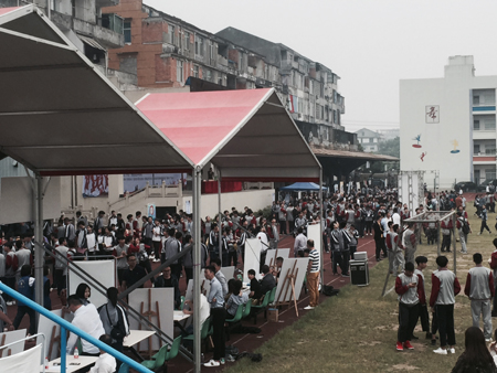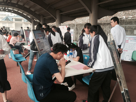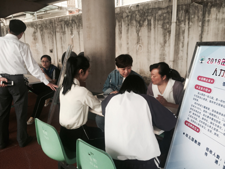 入驻招聘点的均是经过事先精心筛选的优质企业单位,其中包括一些实力强劲并有相当发展潜力的制造型企业,招聘岗位基本涵盖苍南各职校所设的专业。据统计,本次提供的就业岗位近2000个,各单位开出的优厚条件和薪资待遇。操场上,人来人往,熙熙攘攘。毕业生们成群结队地浏览各招聘单位的宣传海报,或前去咨询相关工作内容、薪资福利等情况,招聘单位的工作人员则细心、耐心的一一回答毕业生们的各种疑问。学生们拿着用人单位的申请表,认真仔细地填写,专注地聆听工作人员的解说。