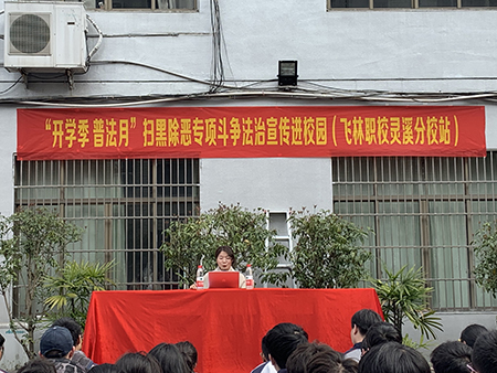 3月27日,苍南飞林职校灵溪分校开展“送法进校”活动,向全校800多名师生进行了“扫黑除恶暨防欺凌”普法宣传教育。