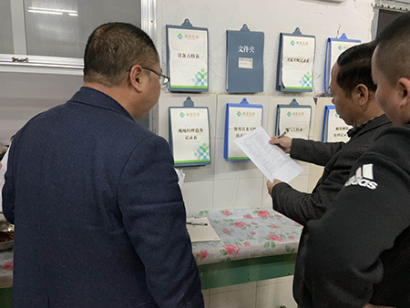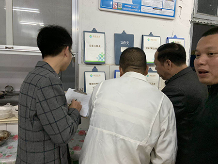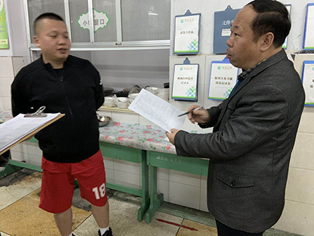 陈华亿校长带领检查组人员先认真查看了食堂环境、设施设备的使用情况及员工们的规范操作情况,逐一检查了销货清单、食品卫生管理台账、食堂工作人员健康证等。